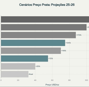 Pela primeira vez em 150 anos, bancos centrais como o da Arábia Saudita e da Rússia começaram a adquirir prata como reserva, com outros países estudando movimentos semelhantes[25][26][27][20]. Se apenas 1-2% das reservas globais fossem alocadas em prata, a demanda extrapolaria a capacidade de produção mundial para vários anos, levando a um reposicionamento radical do mercado.