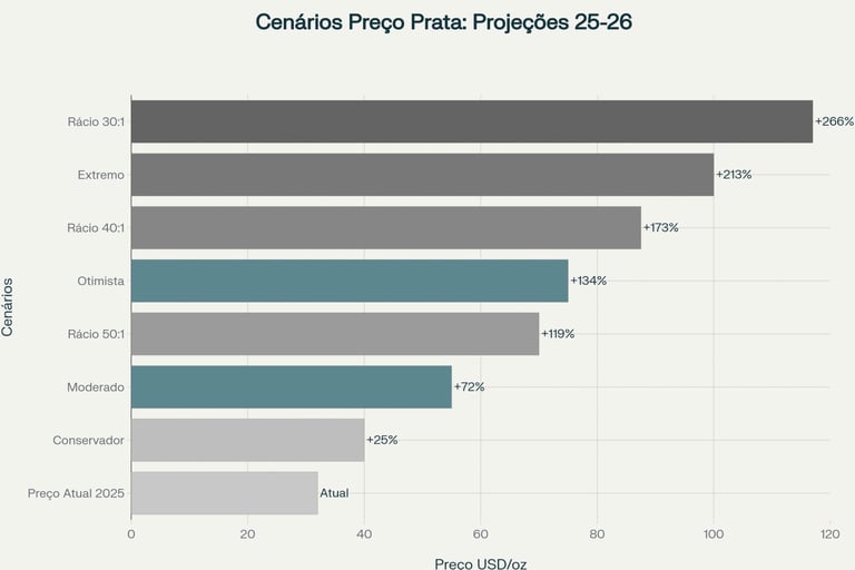 4. Rácio Ouro-Prata Extremamente Elevado: O rácio ouro/prata permanece em cerca de 85:1, longe da média histórica de 50:1 e muito acima de máximos em mercados bull. Este desequilíbrio sugere que o potencial de valorização da prata pode ser ainda mais significativo no próximo movimento estrutural[36][37][38].