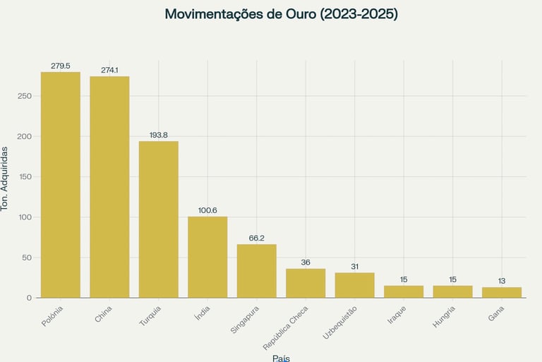 É relevante notar que, paradoxalmente, cada aumento de preço do ouro valorizou principalmente as reservas já acumuladas no Ocidente, tornando a China cautelosa. Após meses de compras agressivas em 2023-24, Pequim reduziu fortemente seu ritmo em 2025, evitando alimentar uma alta que reforçaria a posição financeira adversária[4][5][15][16].